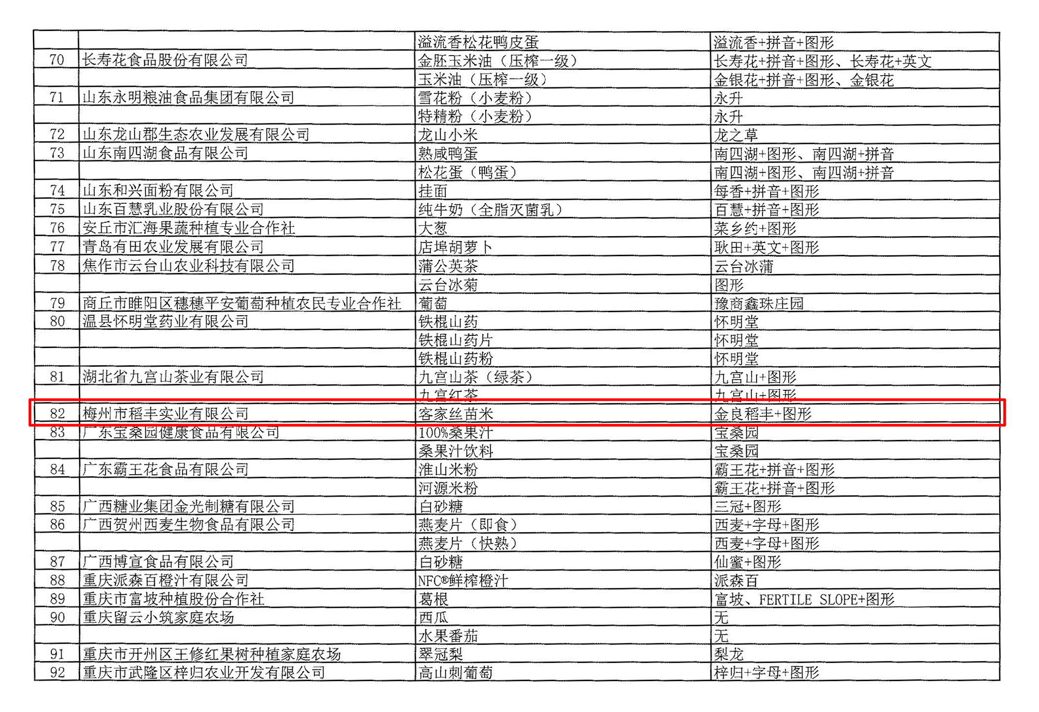 梅州市稻豐實(shí)業(yè)有限公司入選《2023年綠色食品標(biāo)識(shí)使用典范名錄》